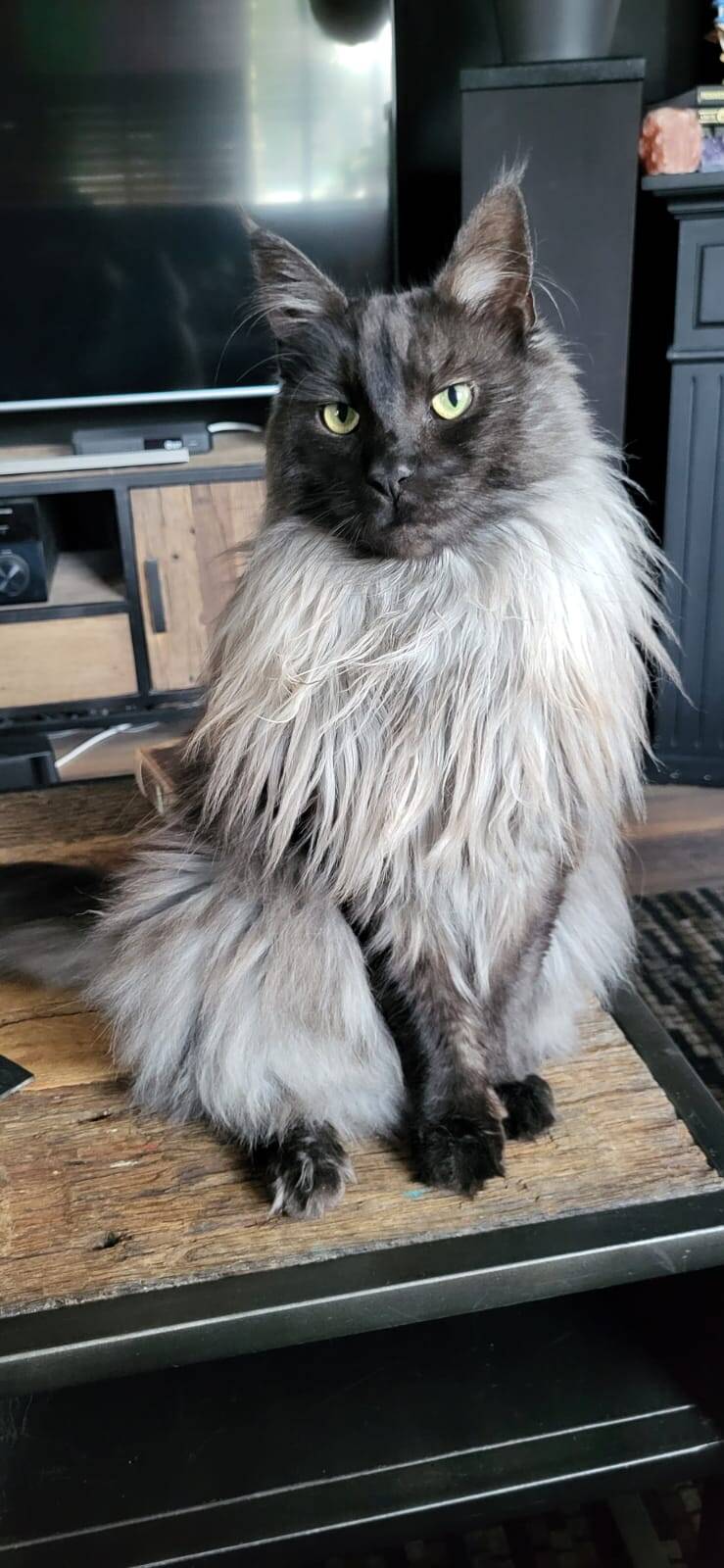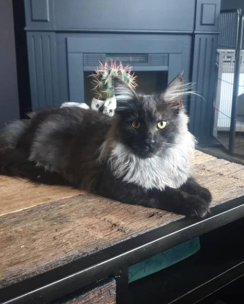 De black was in het begin heel donker daarna ontwikkelde hij mooie strepen en heeft nu een mooie witte kraag zie foto's.